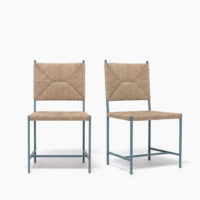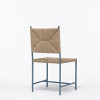 HANDMADE IN NEW YORK with natural seagrass rush and POWDER COATED steel with antique brass finial. inquire for powder coat finish options.
